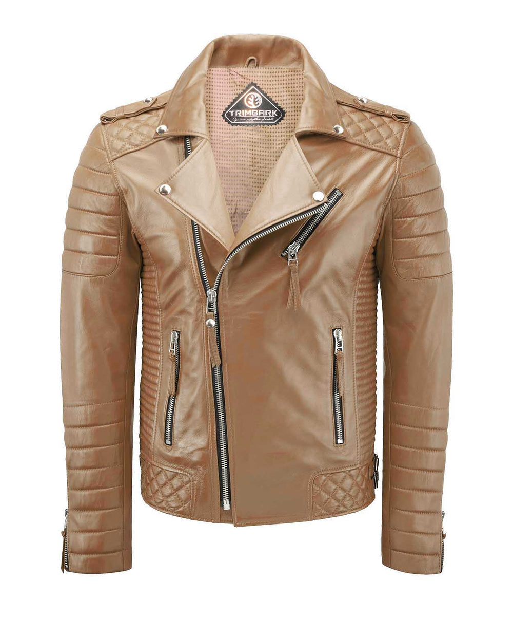 Men’s Genuine Lambskin Leather Biker Jacket Camel
